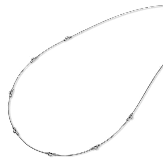 14k White Gold Diamond Station Cable Wire Necklace