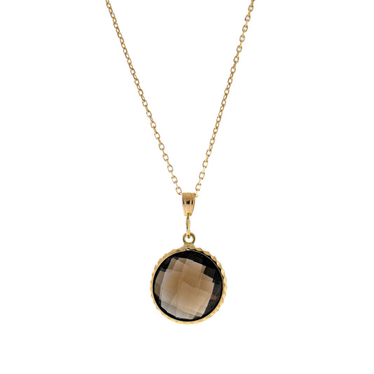 14k Faceted Smoky Quartz Bezel Pendant Necklace