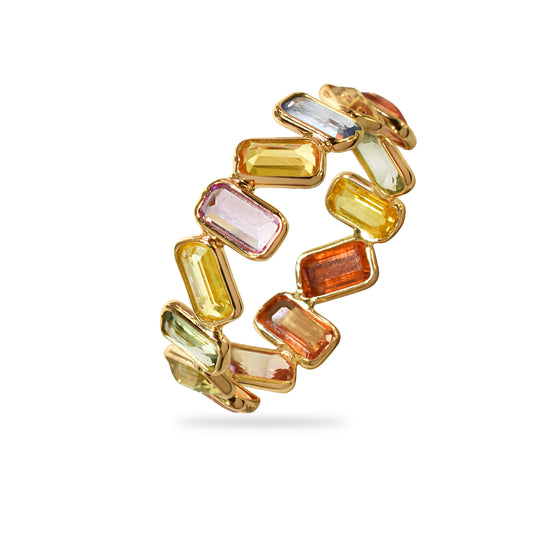 14k Multi Sapphire Rectangles Bezel Ring