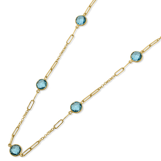 14k Swiss Blue Topaz Fancy Statement Necklace