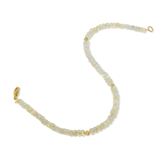 14k Opal Faceted Roundel Gold Ball Bracelet