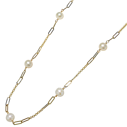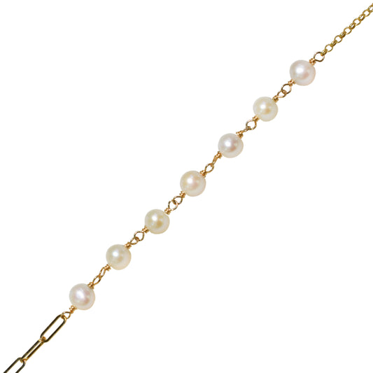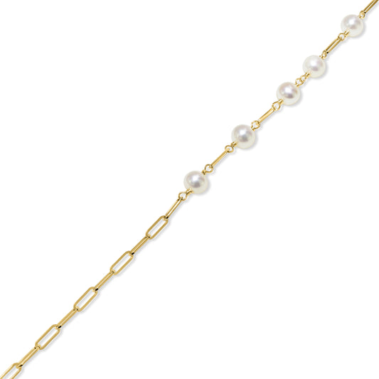 14k White Pearl Fancy Chain Adjustable Bracelet