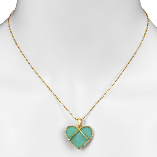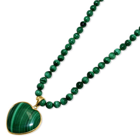 14k Heart Shaped Malachite Bezel Pendant Necklace