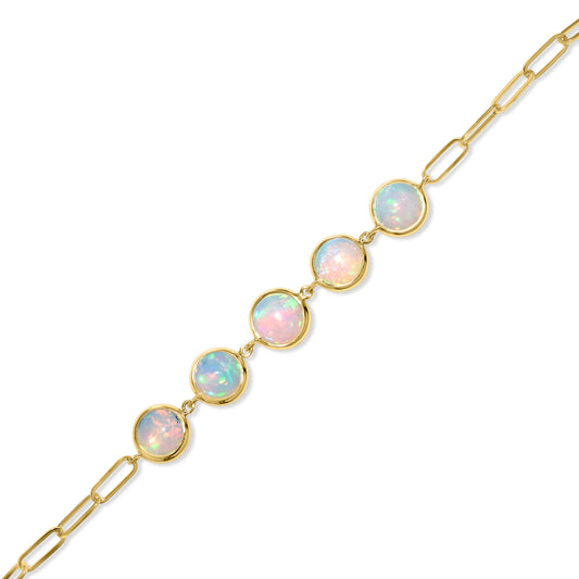 14k Ethiopian Opal 5 Bezel Paperclip Bracelet