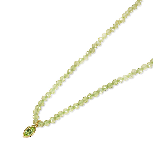 14k Peridot Small Faceted Bead with Pendant Necklace