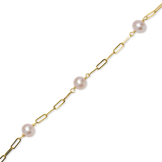 14k Natural Pink Pearl 5 Station Paperclip Bracelet
