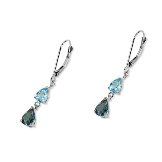 14k White Gold Swiss and London Blue Topaz Leverback Earring