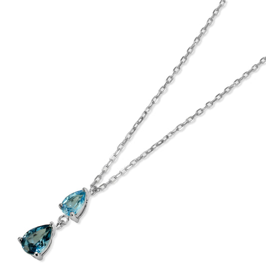 14k Swiss Blue and London Blue Topaz Pear Pendant Necklace