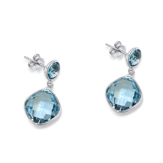 14K White Gold Swiss Blue Topaz Post Earring