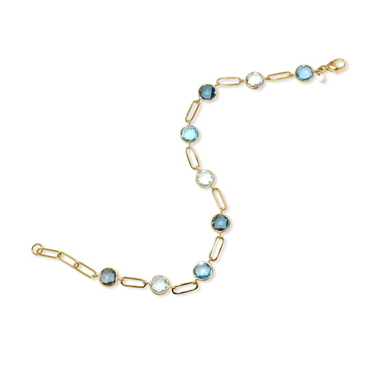 14k Tonal Blue Topaz Paperclip Bracelet
