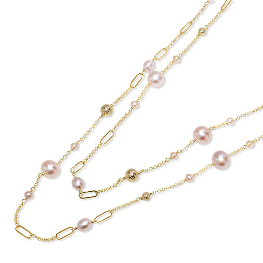 14k Natural Pink Pearl Paperclip Station Necklace