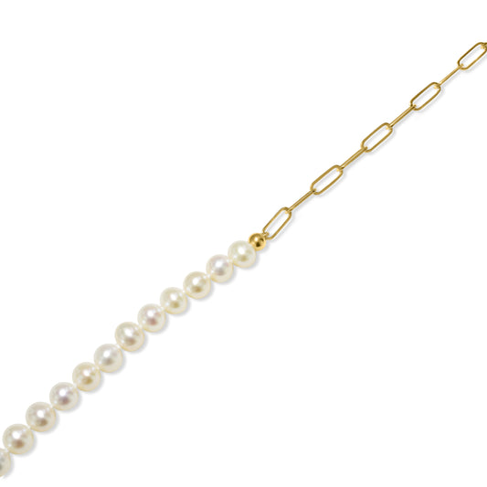 14k White Pearl Paperclip Chain Bracelet