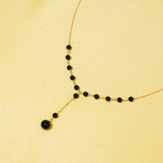14k Black Onyx Beads Y Necklace