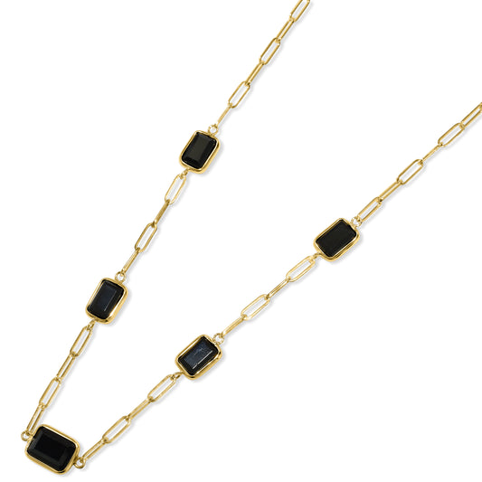 14k Black Onyx 5 Bezel Station Necklace