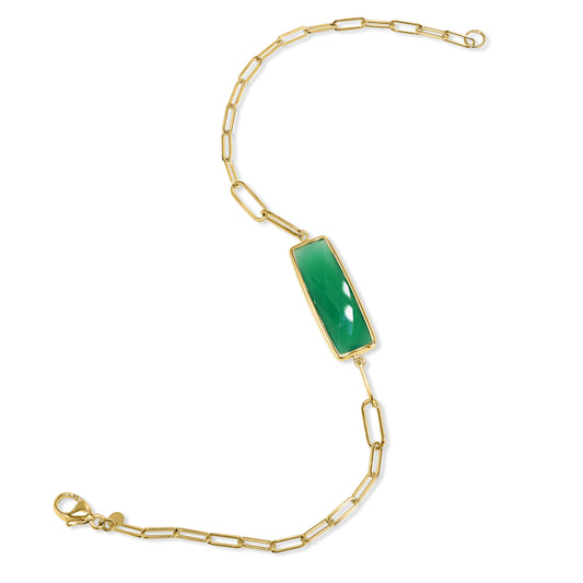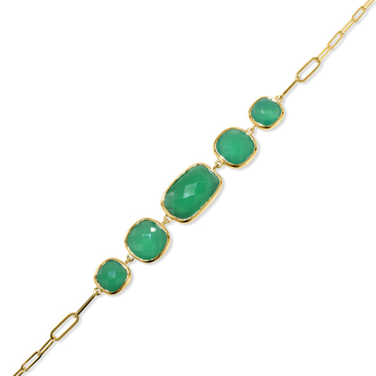 14k Green Onyx Cushion Paperclip Bracelet