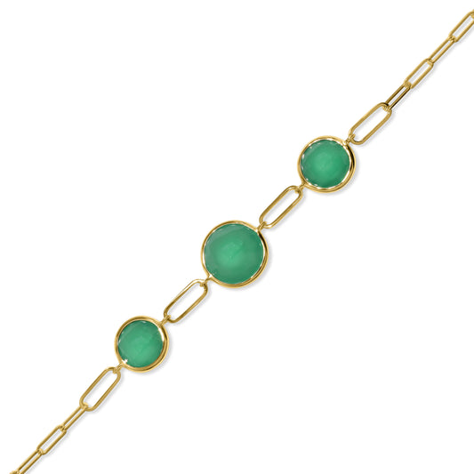 14k Green Onyx 3 Round Bezel Paperclip Bracelet
