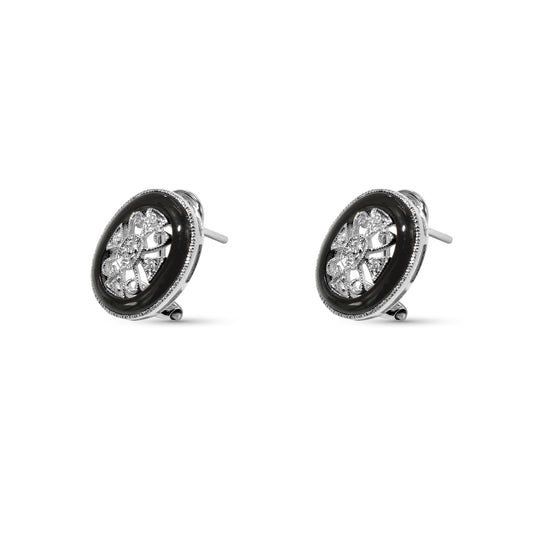18k White Gold Onyx Diamond Ear Clips with Post
