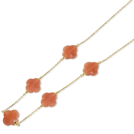 14k Yellow Gold Faceted Clover Station Necklace