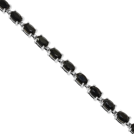 14k White Gold Black Onyx Oval Link Bracelet