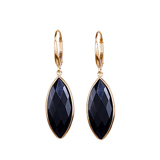 14k Black Onyx Marquise Bezel Leverback Earring