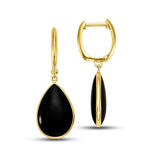 14k Black Onyx Smooth Pear Bezel Hoop Earring
