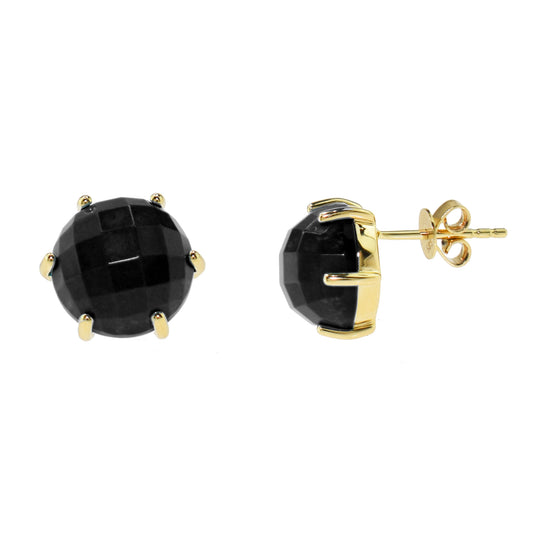 14k Black Onyx Hemisphere Faceted Studs