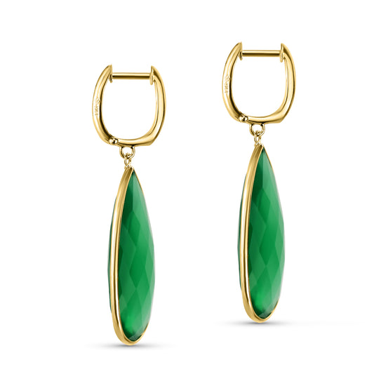 14k Green Onyx Elongated Pear Drop Hoop Earring