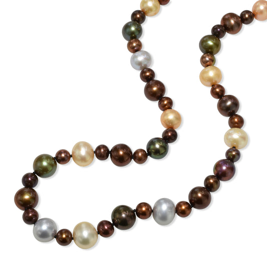 Sterling Silver Multi Chocolate Brown Pearl Knotted Necklace