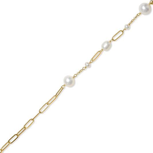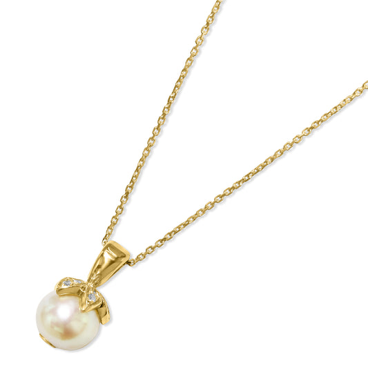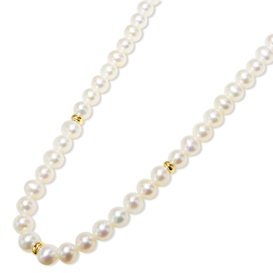 14k White Pearl Drop Faceted Gold Ball Necklace