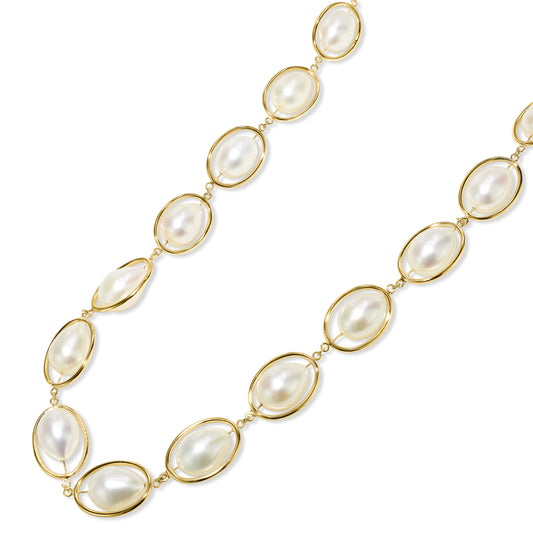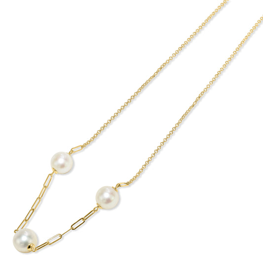 14k Grey Freshwater Pearl Black Spinel 1X1 Link Necklace