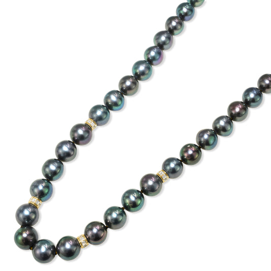 14k Black Freshwater Pearl Diamond Roundel Necklace