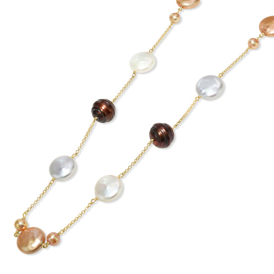 14k Natural Pink Pearl Fancy Chain Adjustable Bracelet