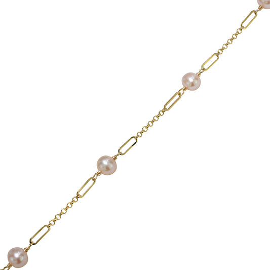 14k Natural Pink Pearl 5 Fancy Station Bracelet