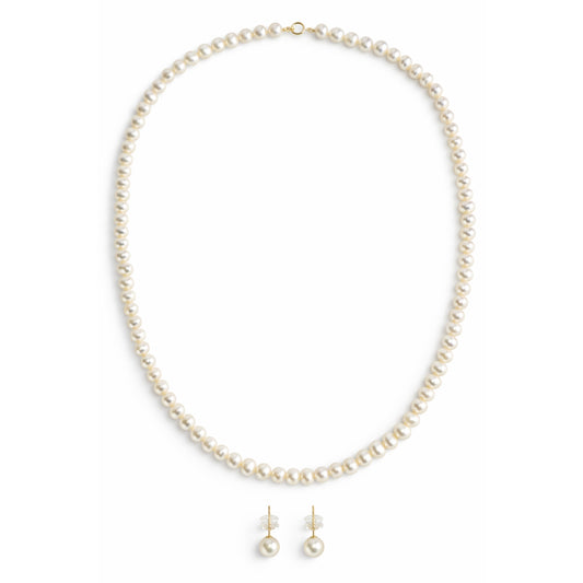 14k White Pearl Multi Gemstone Station Set Necklace and Earring