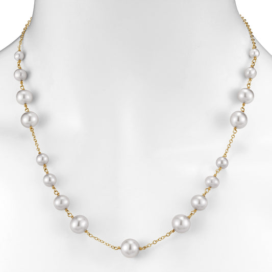 14k White Pearl Graduated Bead Slide Pendant Necklace