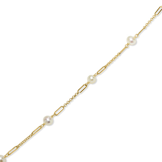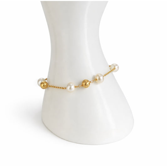 14k White Pearl Glitter Gold Ball Station Bracelet