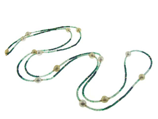 14k Emerald Beads Golden South Sea Pearl Necklace
