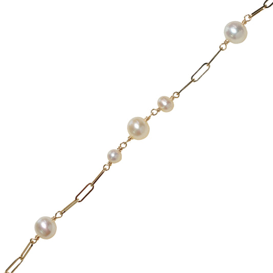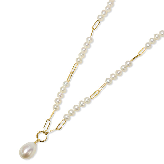 14k White Pearl Paperclip with Drop Pendant Necklace