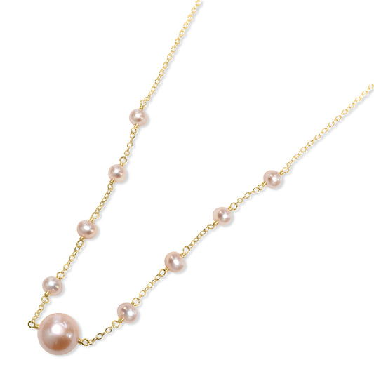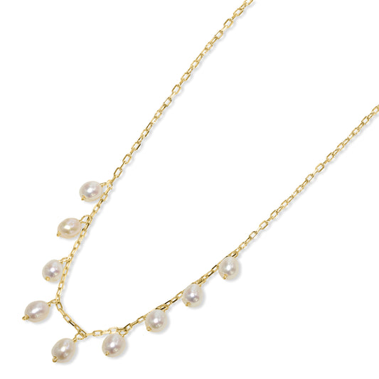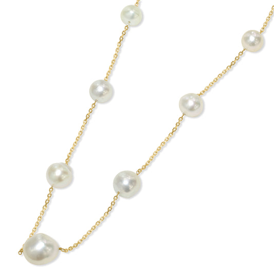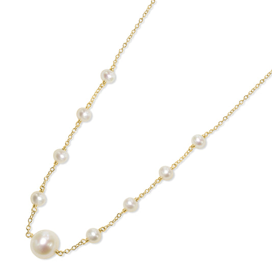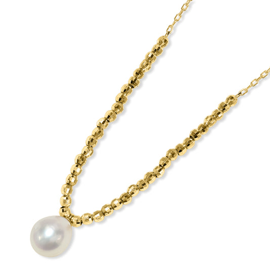 14k White Pearl Drop Faceted Gold Ball Necklace