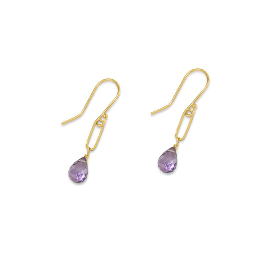 14k Amethyst Drop Paperclip Chain Hook Earring