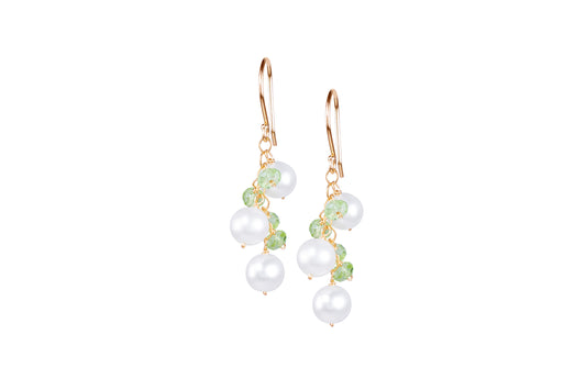 14k White Freshwater Pearl Citrine, Blue Topaz, Peridot, Amethyst Hook Drop Earring