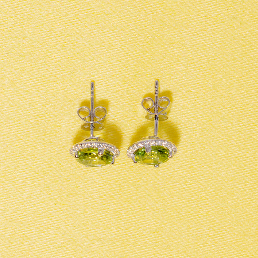 14kw Peridot Round VS Diamond 0.17CT Post Earring