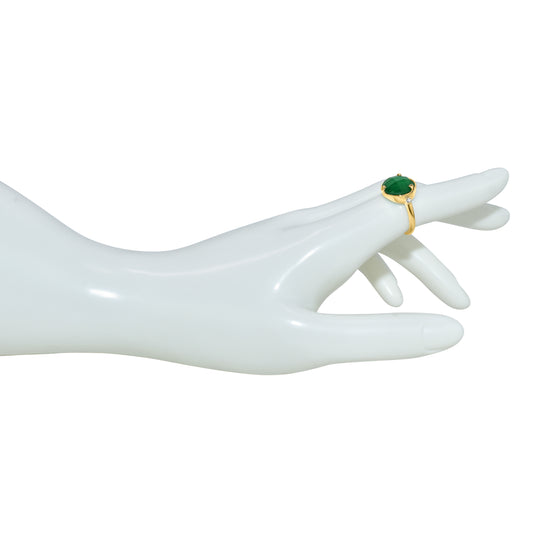 14k Green Onyx Round VS Diamond 0.06CT Ring