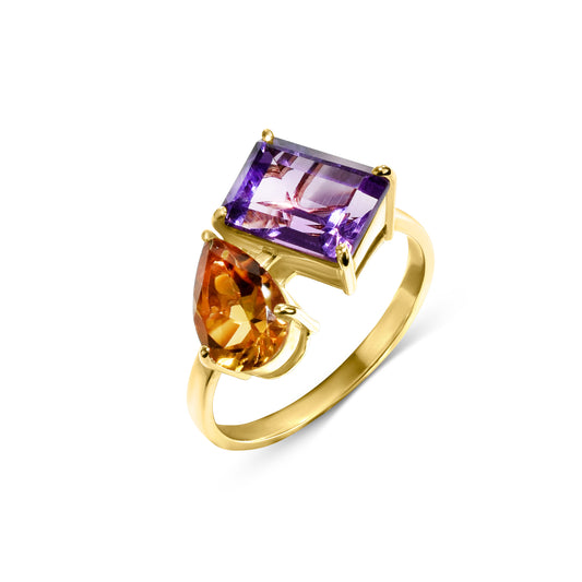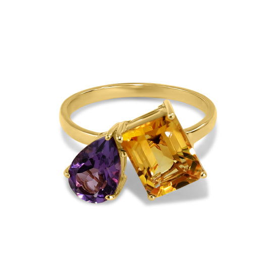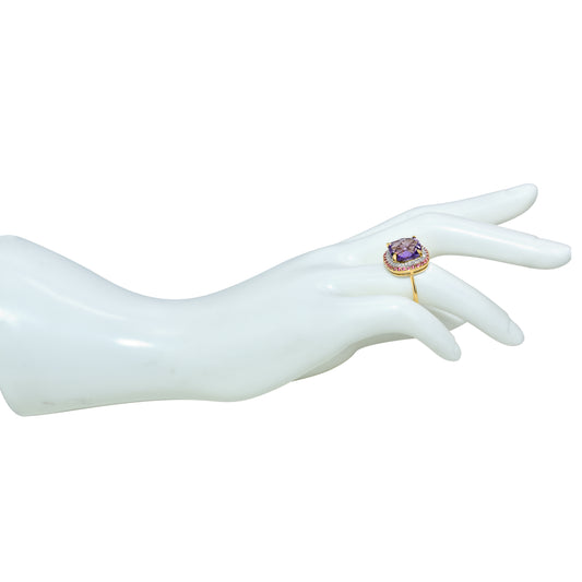 14k Amethyst, Pink Tourmaline VS Diamond Cushion Ring