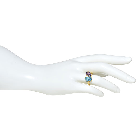14k Swiss Blue Topaz And Amethyst Two Stone Ring Size - 7