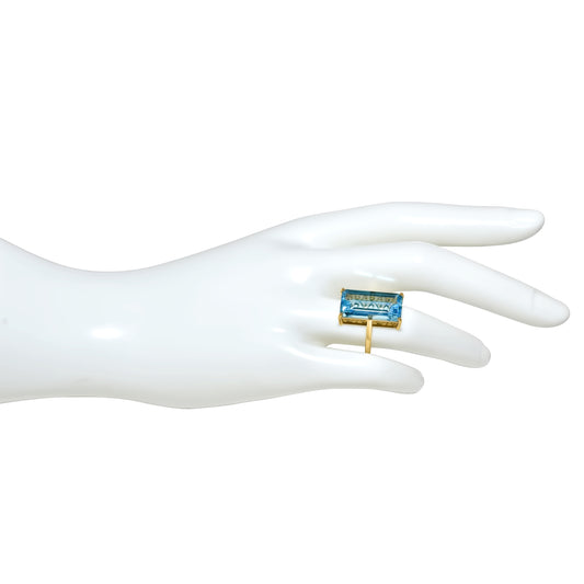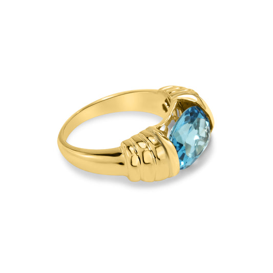 14k Swiss Blue Topaz Oval Fancy Cut Heirloom Ring