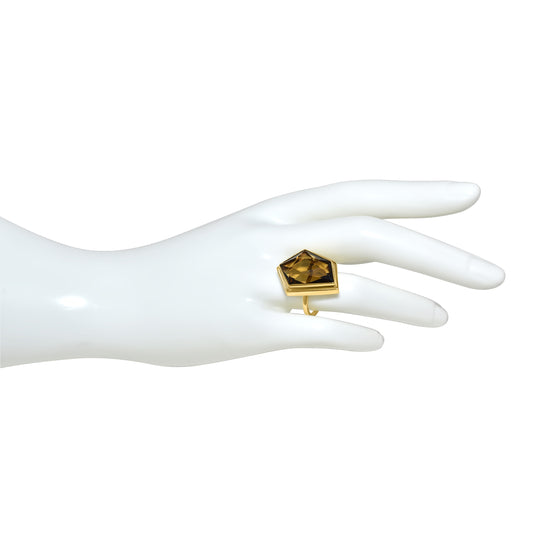 14k Andy Gotz Euclid Whiskey Quartz Polygon Ring