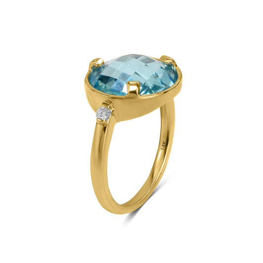 14k Swiss Blue Topaz Round VS Diamond Ring