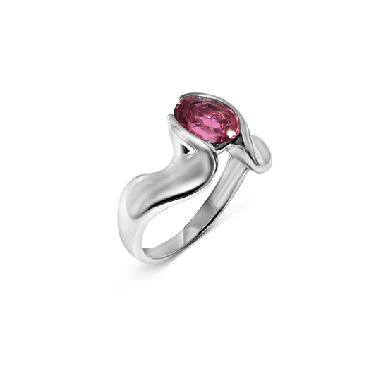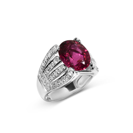 18k White Gold Rubelite Tourmaline Diamond Ring