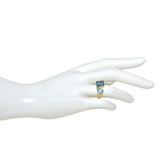 14k Swiss And Sky Blue Topaz Two Stone Ring Size - 7